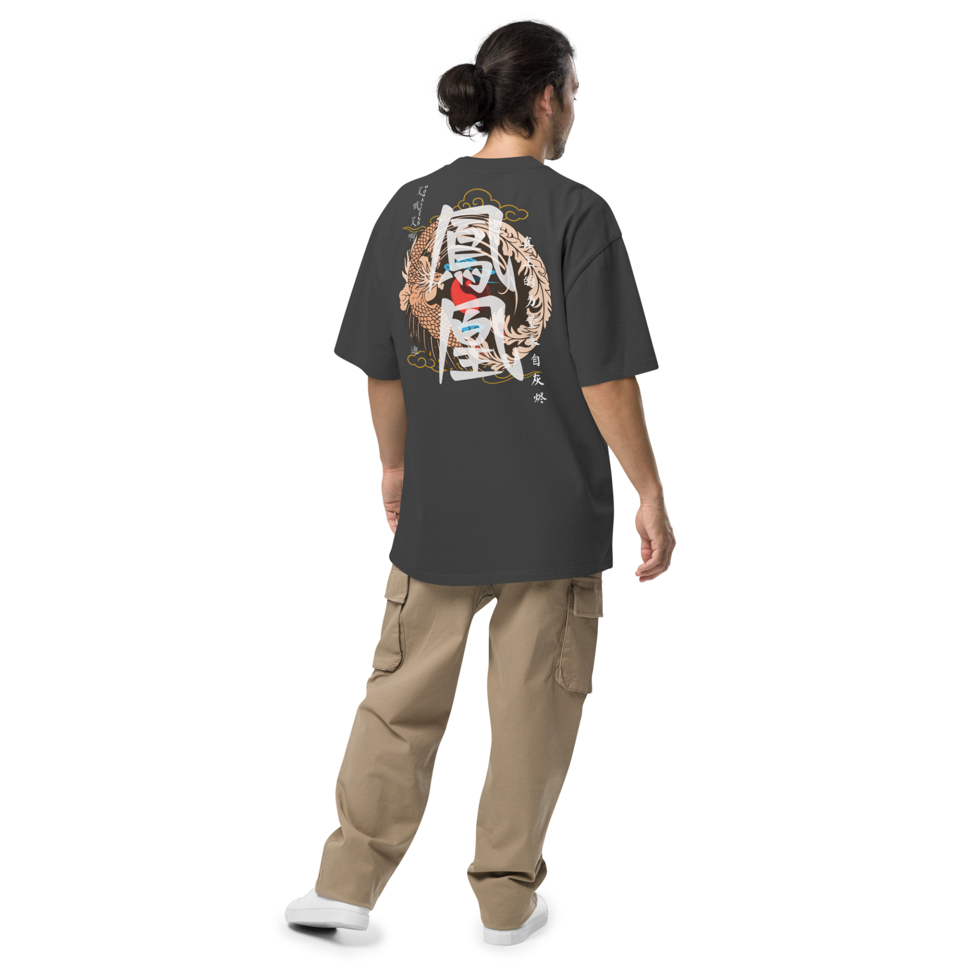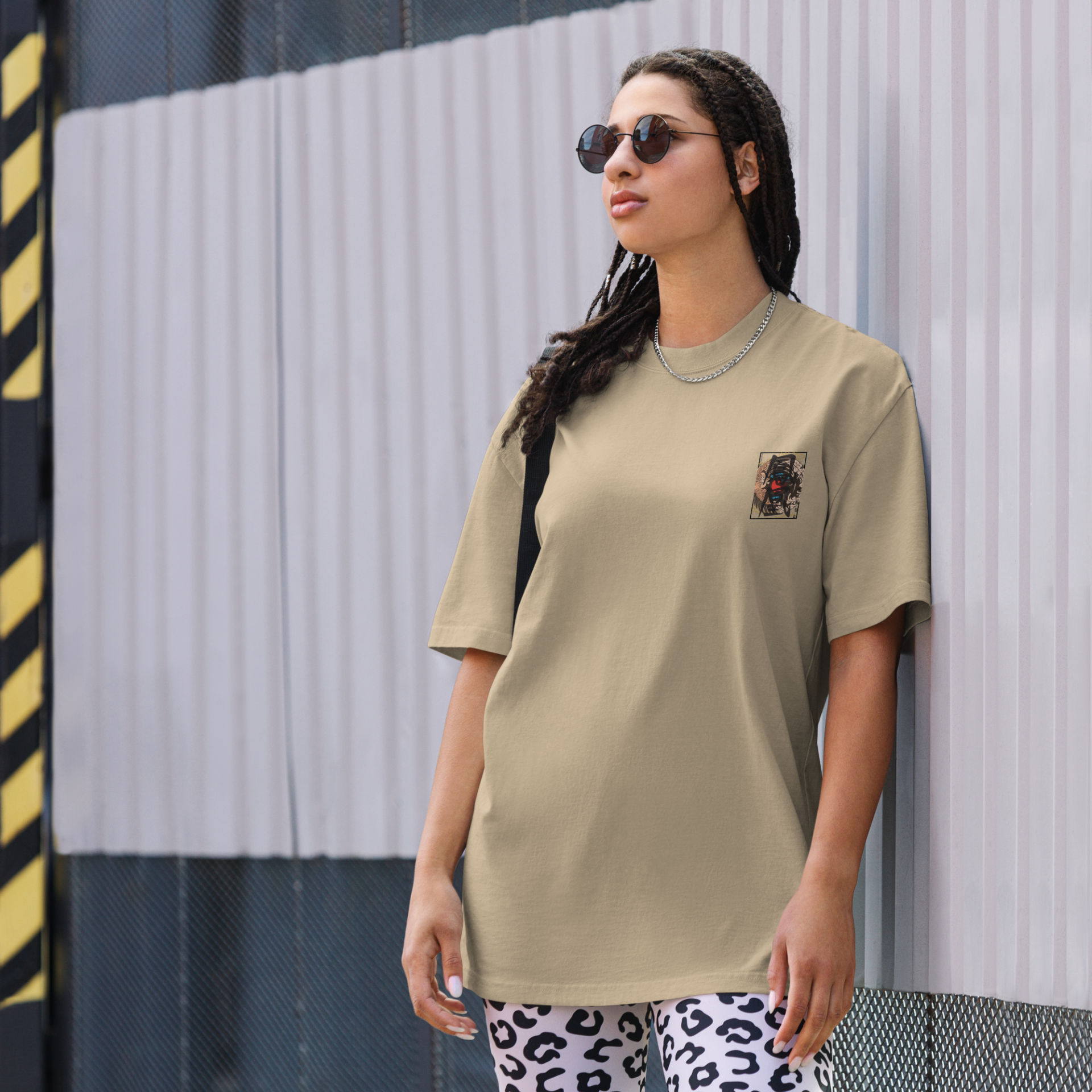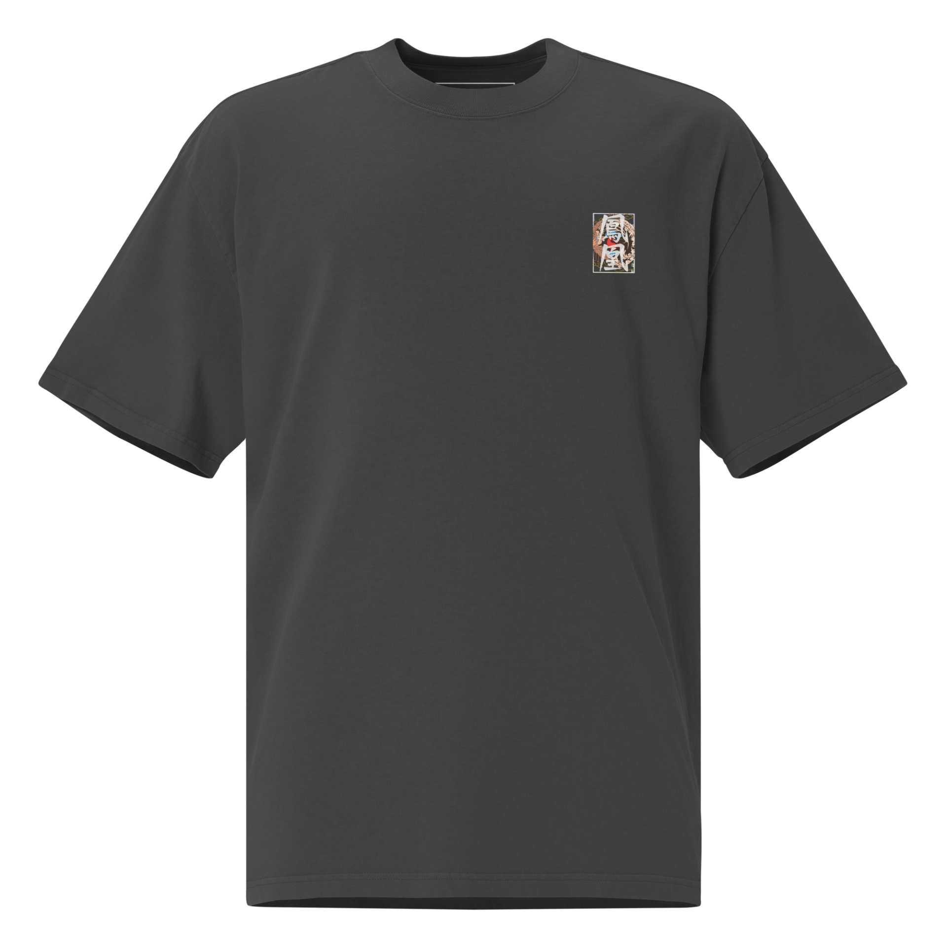 Place the end of the tape beside the collar at the top of the tee (Highest Point Shoulder). Pull the tape measure to the bottom of the shirt.
